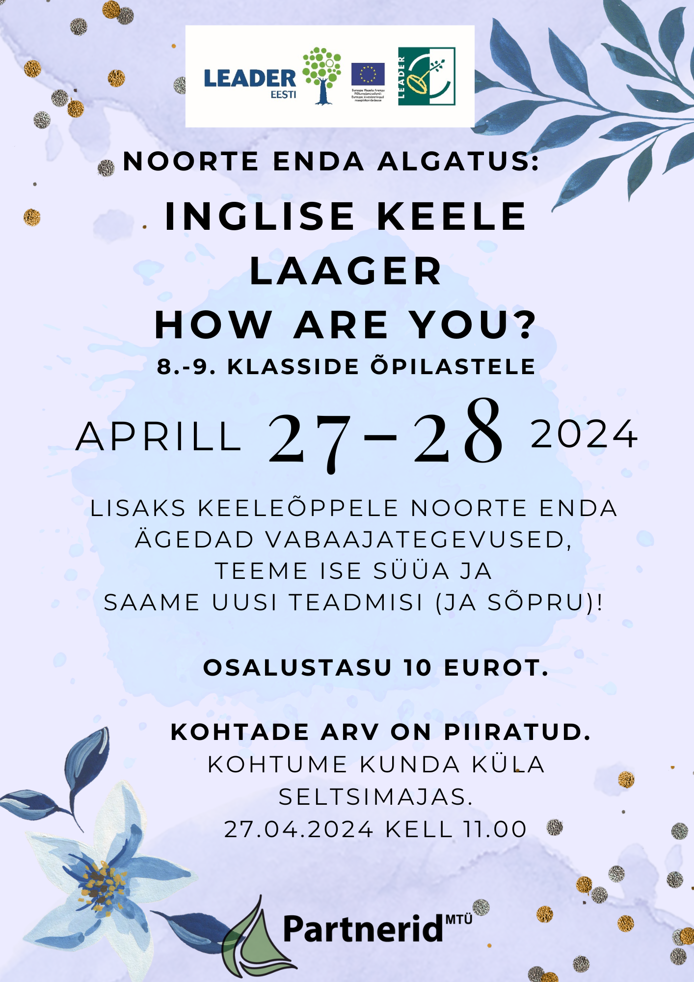MTÜ Partnerid M1.2 ühisprojekti „Särtsu juurde vol 2“ raames toimub 27.-28. aprillil 2024 noorte inglise keele laager “How are you?”.