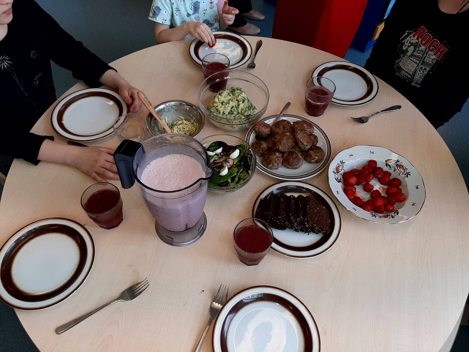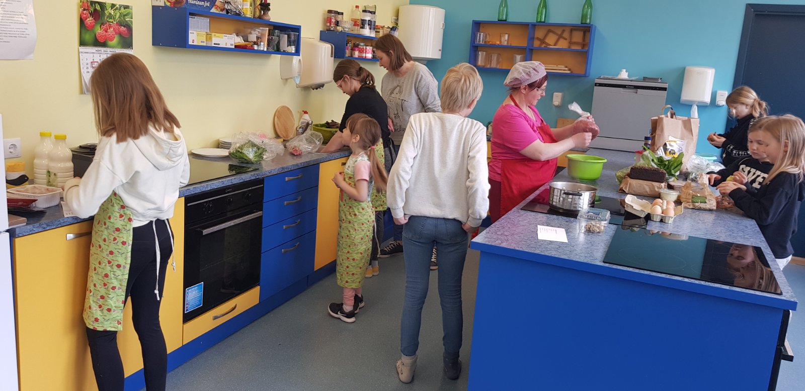 5. mail oleme koostööprojekti “Põhja-Eesti kohalik toit tuntuks” raames Sõmeru koolis, kus kokandusringis valmistavad lapsed koolikokk Ave Holmi juhendamisel kohalikust toorainest maitsva ja tervisliku lõunasöögi. Menüüs oli kartuli-karulaugupuder, kotletid peidetud vutimunaga, värviline kevadesalat, kosutav jogurtismuuti marjadega ja karulauguvõi rukkileival.