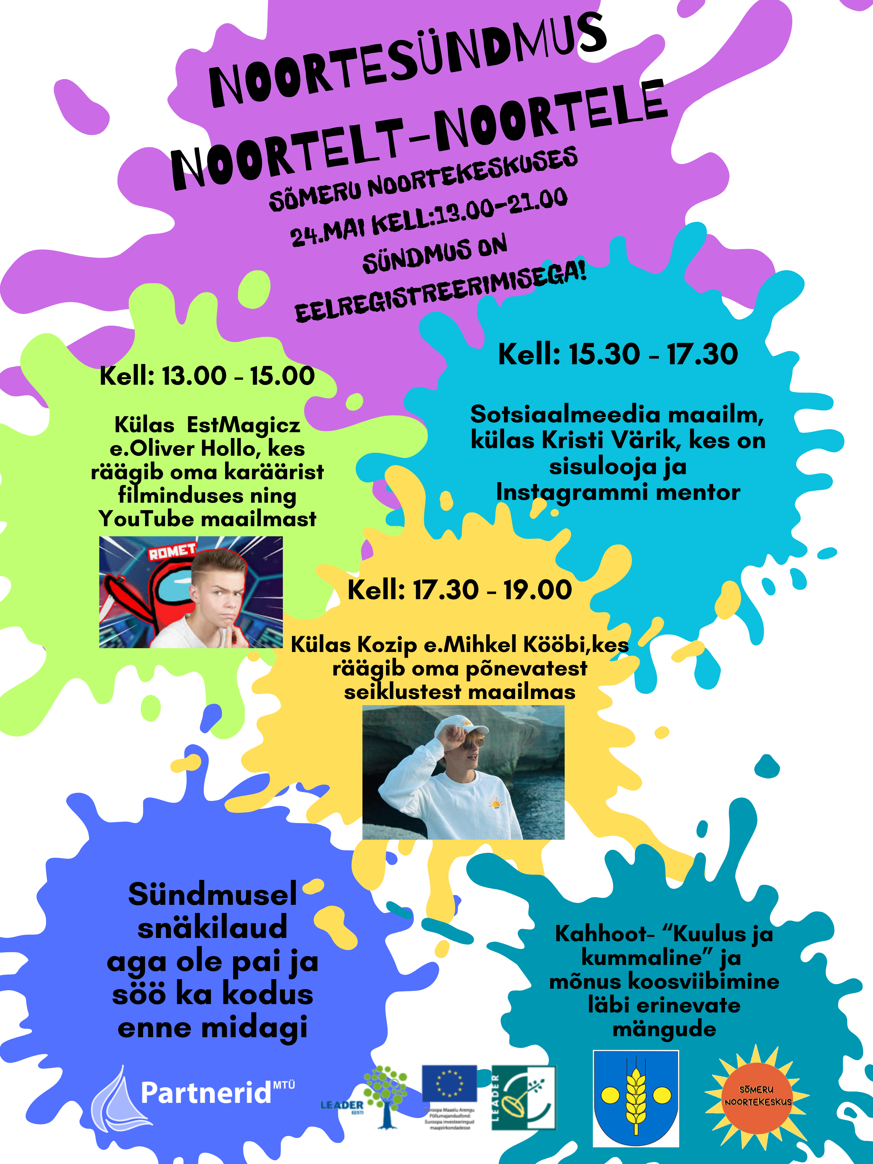 MTÜ Partnerid M1.2 ühisprojekti „Särtsu juurde vol 2“ raames toimub 24. mail 2024.a kell 13.00-21.00 noortesündmus “Noortelt-noortele”.