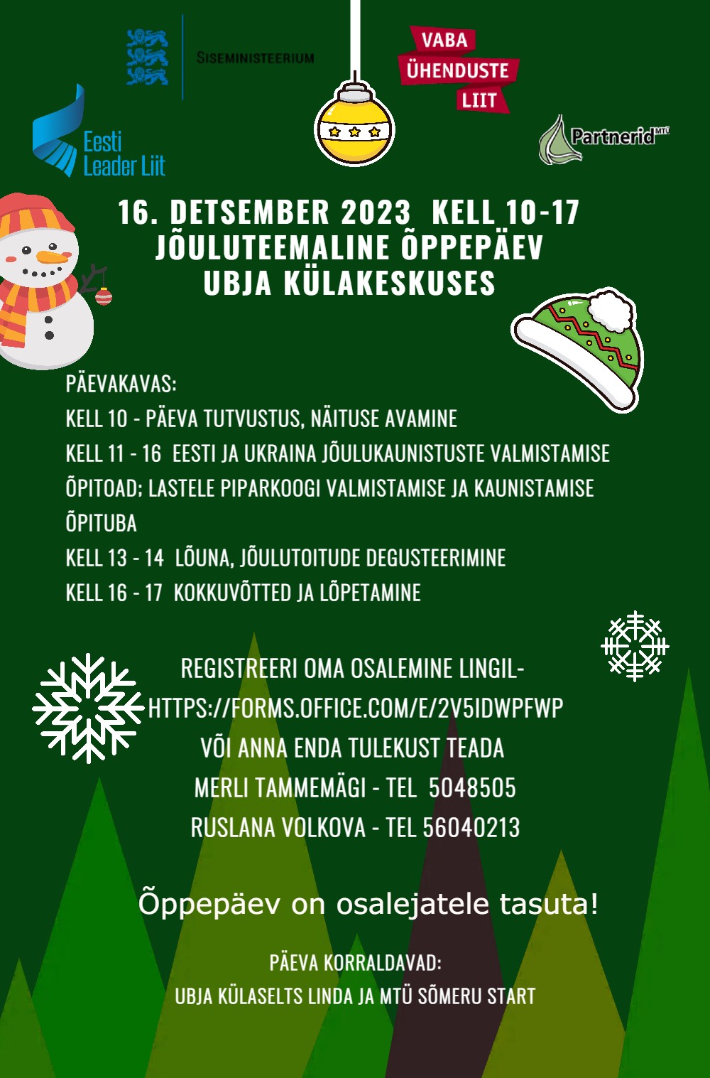16.detsembril 2023 toimub Rakvere valla elanikele Ubja Külakeskuses õppepäev, kus räägitakse nii Eesti kui Ukraina jõulukommetest ning traditsioonidest, saab vaadata samal teemal näitust ning osaleda jõulukaunistuste valmistamise õpitubades. Noortele ja lastele on avatud piparkoogi valmistamise ning kaunistamise õpituba. Degusteerida saab jõuluroogasid.