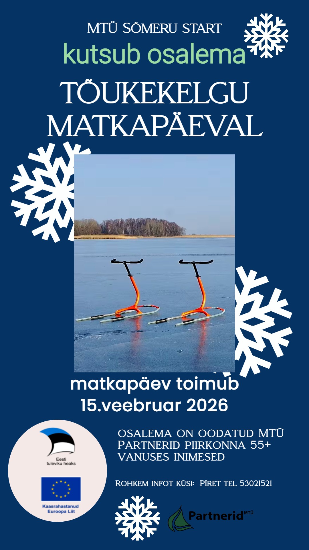 MTÜ Partnerid ESF+ meede 5.1 „Sotsiaalne toimetulek“ 2025.a. esitatud miniprojekti „Õppepäev Läänemaal – TALVISED LIIKUMISRÕÕMUD“ raames korraldab MTÜ Sõmeru Start 15. veebruaril 2026.a tõukekelgu matkapäeva merejääl.